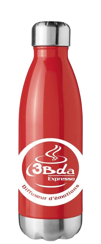 Gourde de 510 ml avec double paroi isolation par le vide pour garder des boissons chaudes (5h) ou froides (15h).
