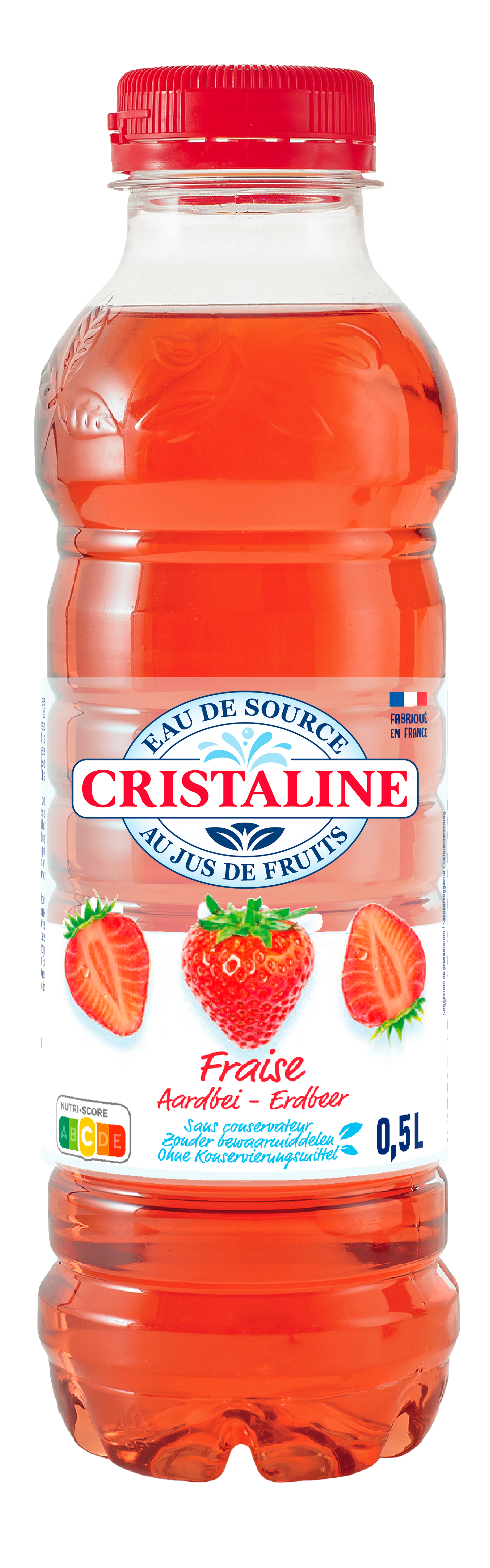 La saveur du fruit alliée à l'eau de source Cristaline pour une pause gourmande tout en s'hydratant ! Caractéristiques organoleptiques : Produit coloré en rouge, odeur fraise discrète, saveur fraise intense type « fraise des bois ».