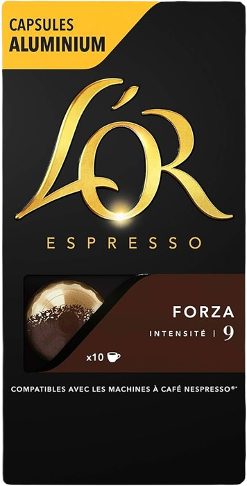 Laissez-vous surprendre par L'OR Espresso Forza, un espresso intense et corsé qui révèle toute la richesse d’un café torréfié à la perfection. Son profil aromatique associe des notes boisées et épicées, relevées par une touche subtile de réglisse et de chocolat noir. Cette combinaison audacieuse offre une longueur en bouche remarquable, sublimée par une crema onctueuse et dorée.