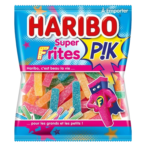 Super Frites Haribo L’incontournable frite en version PIK pour encore plus de fun. Carton de 30 sachet de 120g.