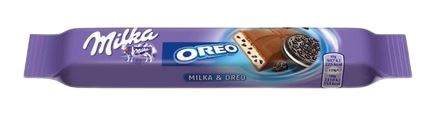 Oreo de Milka en format barre : L’alliance du tendre chocolat au lait du Pays Alpin MILKA et des morceaux de BISCUITS OREO, fourrée d’une délicieuse CREME CONFISEUR goût vanille.