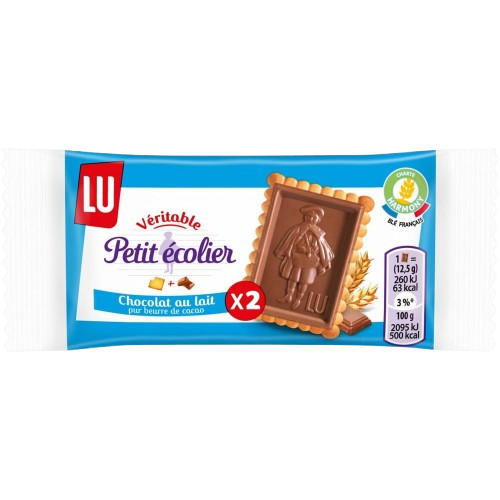 Véritable Petit Écolier de LU en format pocketPetits beurres recouverts d'une tablette de chocolat au lait.
