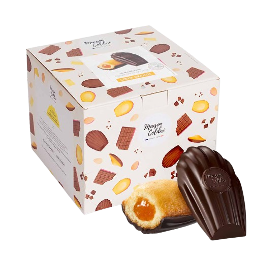 Recette unique et déposée, la coque en chocolat est la marque de fabrique de la Maison Colibri. Les madeleines sont moulée dans du chocolat au lait ou noir et composées de plus de 30% de chocolat. La coque en chocolat est épaisse et croquante.