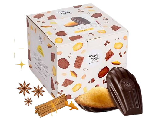 Les fêtes de Noël riment avec gourmandise, et quoi de mieux pour satisfaire vos envies qu'une madeleine gourmande aux épices de noël et sa coque chocolat noir signée Maison Colibri?